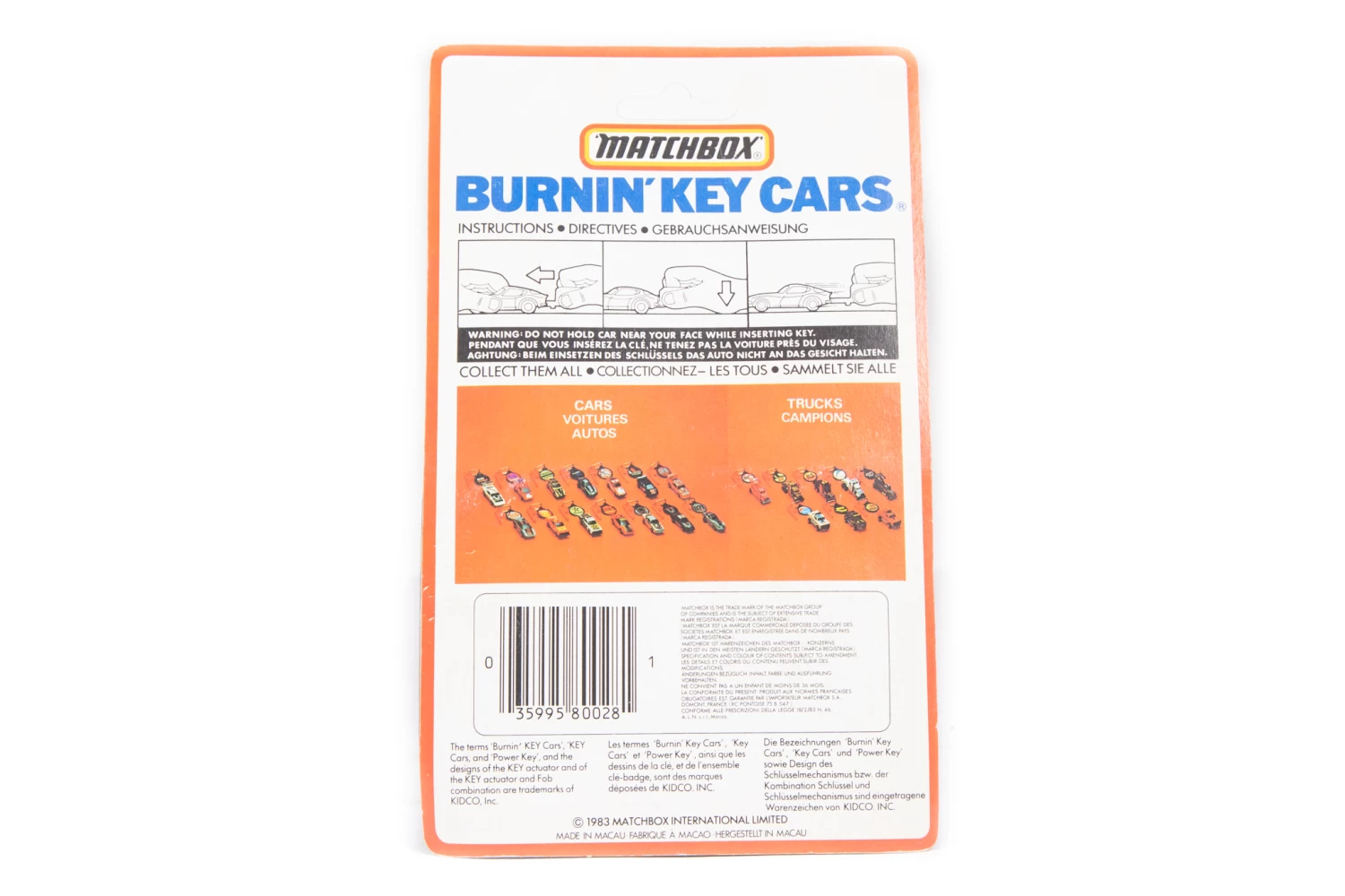Burnin’ Key Cars are made by Matchbox and need a key to get them to work ( You insert the key into the back of the car, which compressed a tight spring, and then you squeezed the key to release the car .