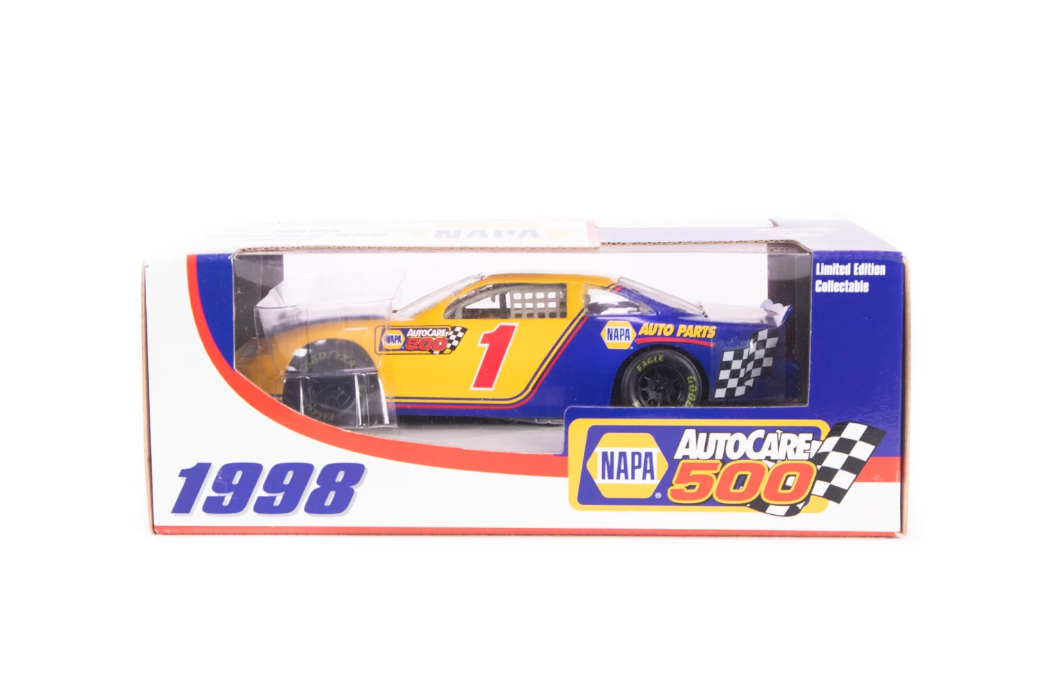 This 1/24th scale diecast replica model has moving wheels and opening engine bay with lots of details throughout. This is scale replica of 1998 Napa autocare 500