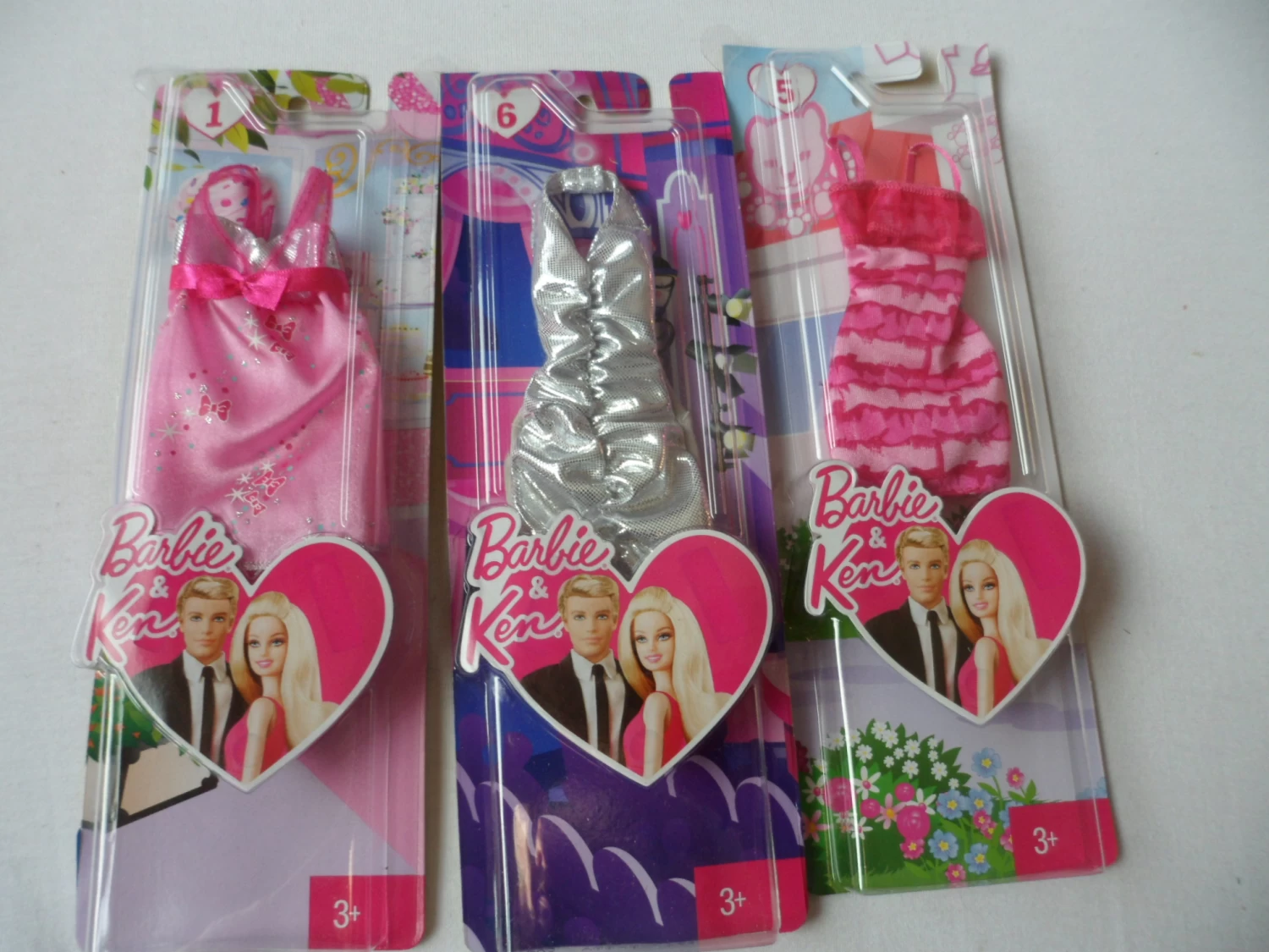 Included are 3 Barbie fashions from the Y8847 assortment, these fashions are made for any occasion Barbie and Ken might be invited to.