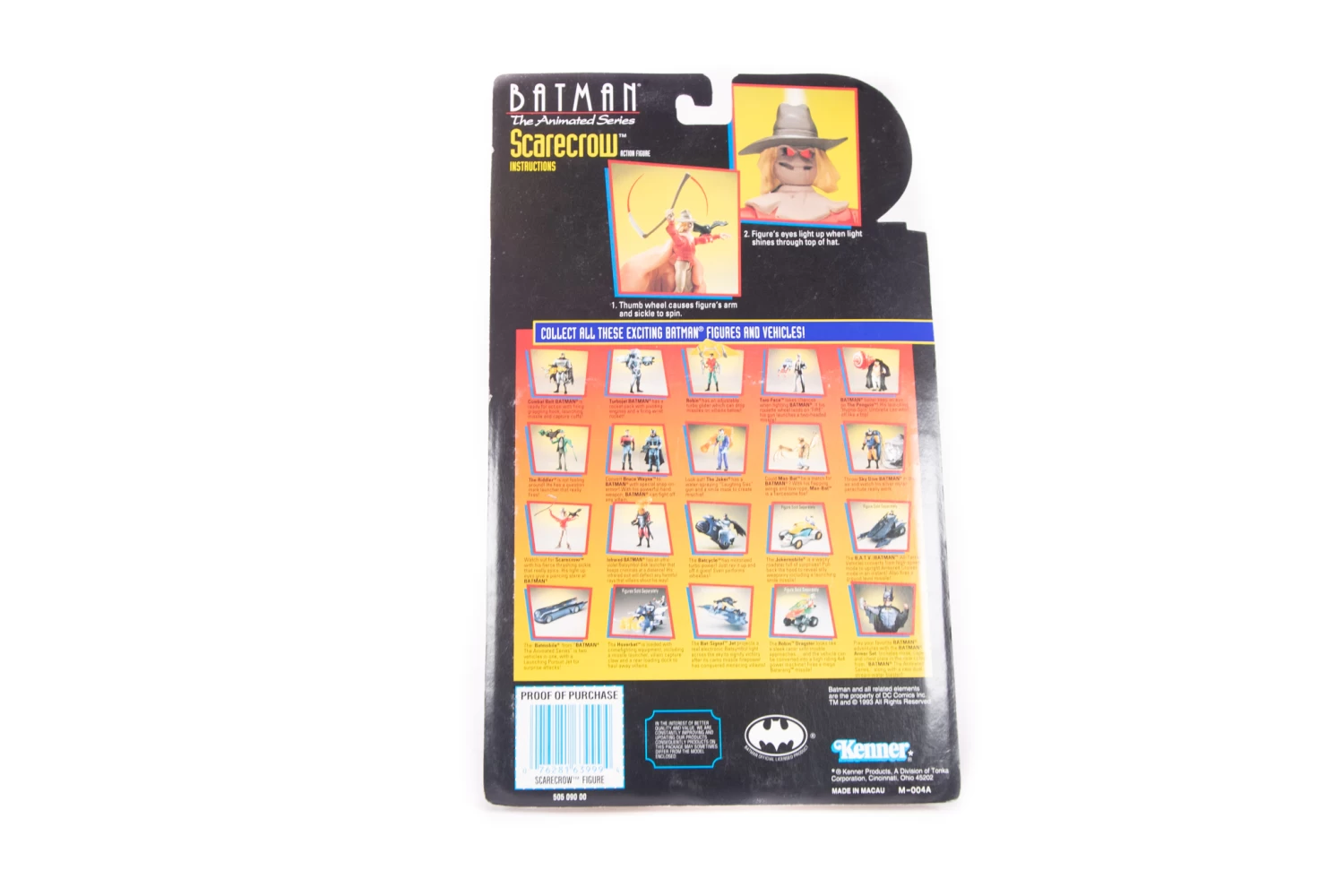 From the Batman Animated series, this Scarecrow Action Figure comes with Thrashing Sickle. It is from the 1993 Kenner series of figures.