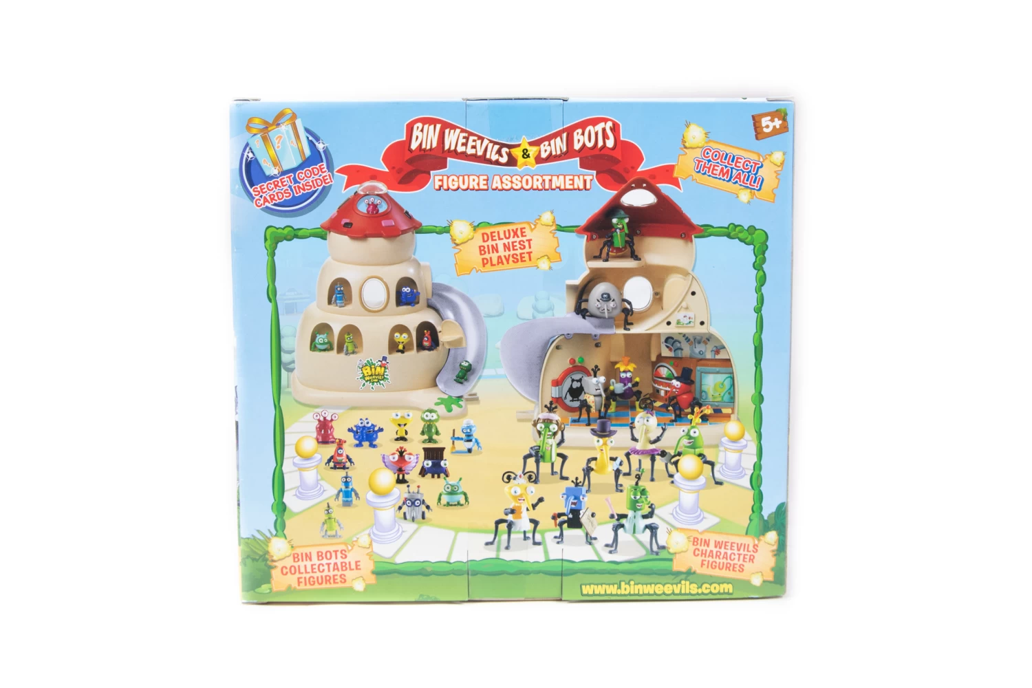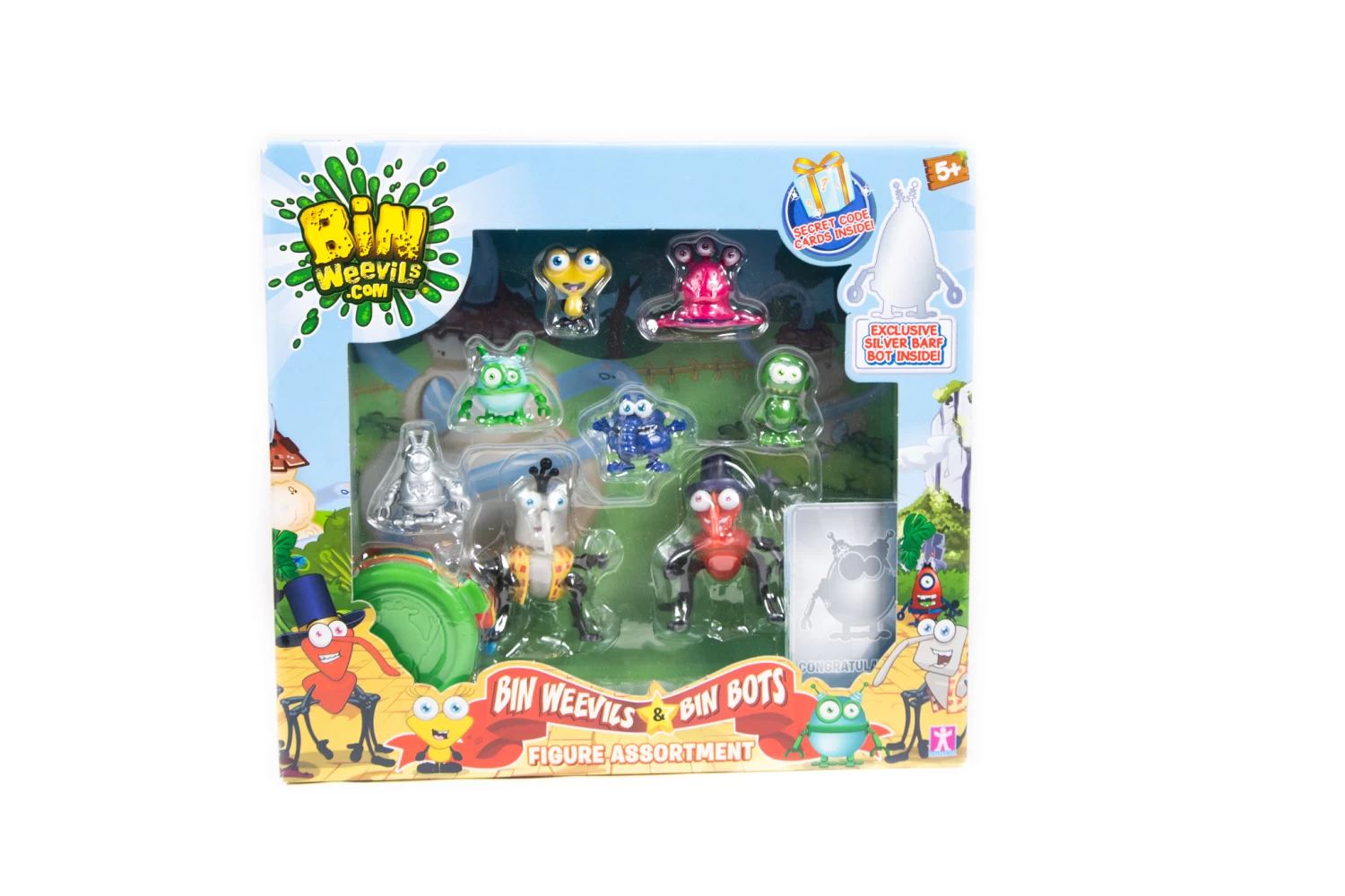 Cool Bin Weevil and Bin Bot pack includes a selection of your favourite character from Bin Weevils.com. Includes 2 Bin Weevils characters and 6 Bin Bot figures. Characters included are Clott, Tink, Brainless Bot, Munch Bug, Slug Bug, Mulch Mite, and Hug Bug. Also includes special silver Barf Bot! Comes with collector’s card