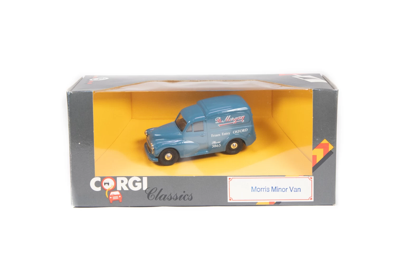 This is a collector’s model produced by Corgi, the model is of a Morris Minor Van.