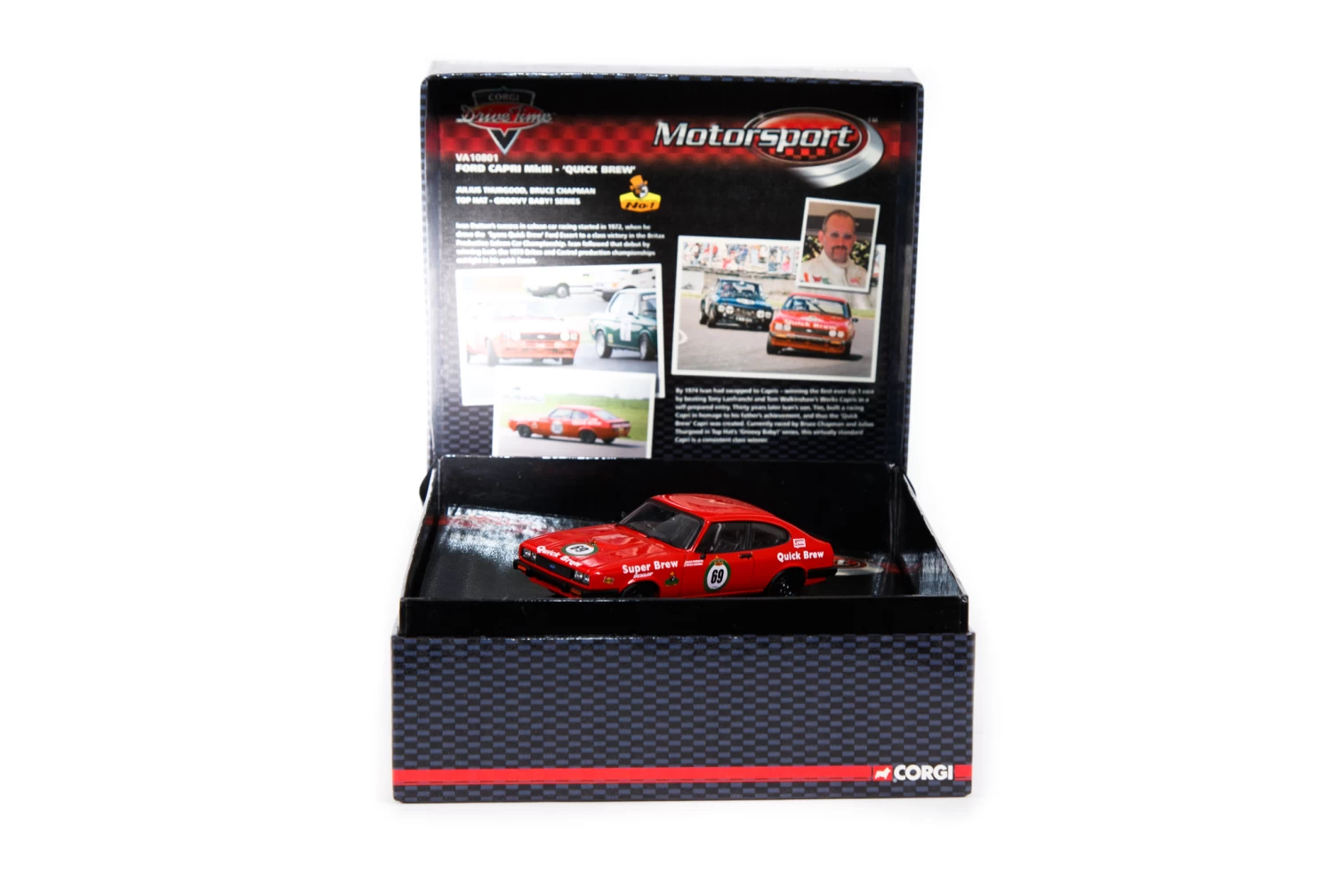 Corgi Drive Time Motorsport – Ford Capri MkIII – Quick Brew – Top Hat – Groovy Baby! Series – Julius Thurgood, Bruce Chapman – VA10801