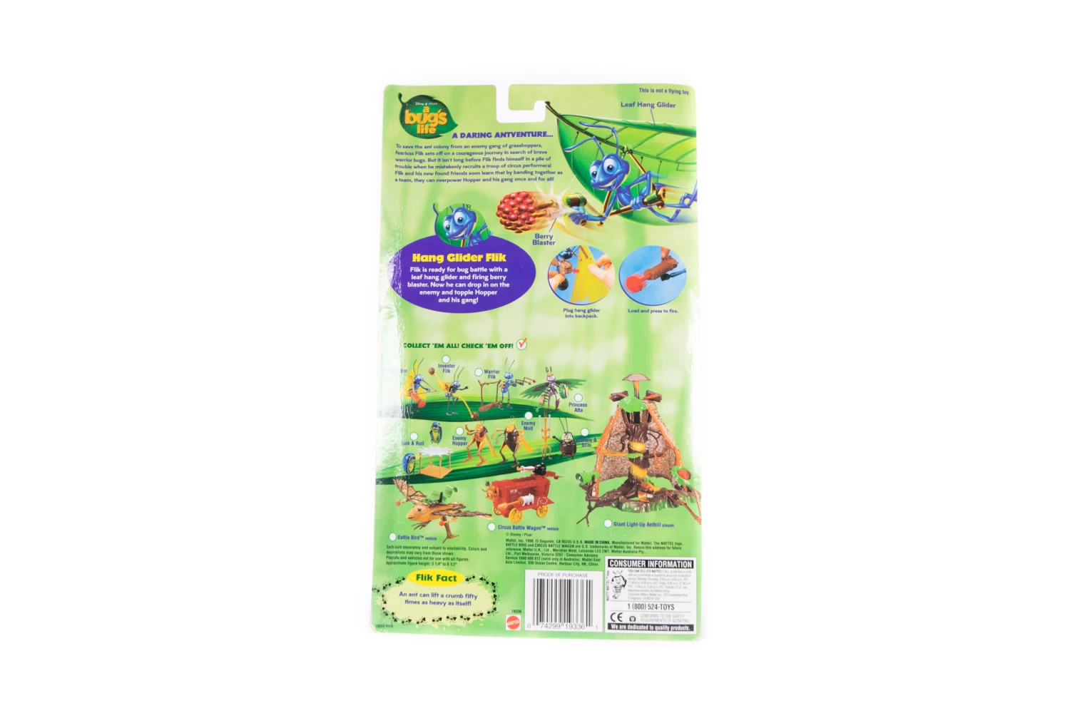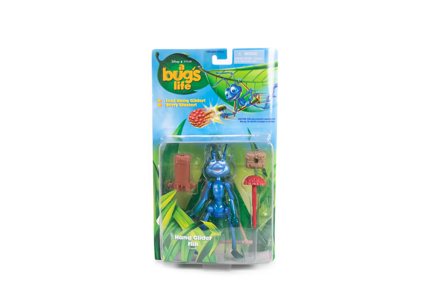 Flik is ready for bug battle with a leaf hang glider and firing berry blaster.