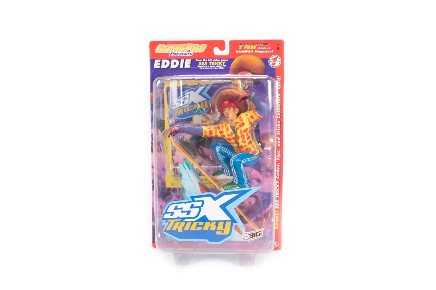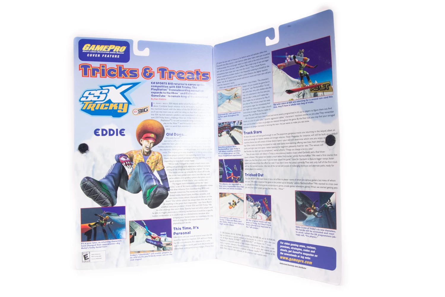 This 6″ Figure is of Eddie from the legendary game, SSX Tricky. It is non poseable and comes complete with board and stand.