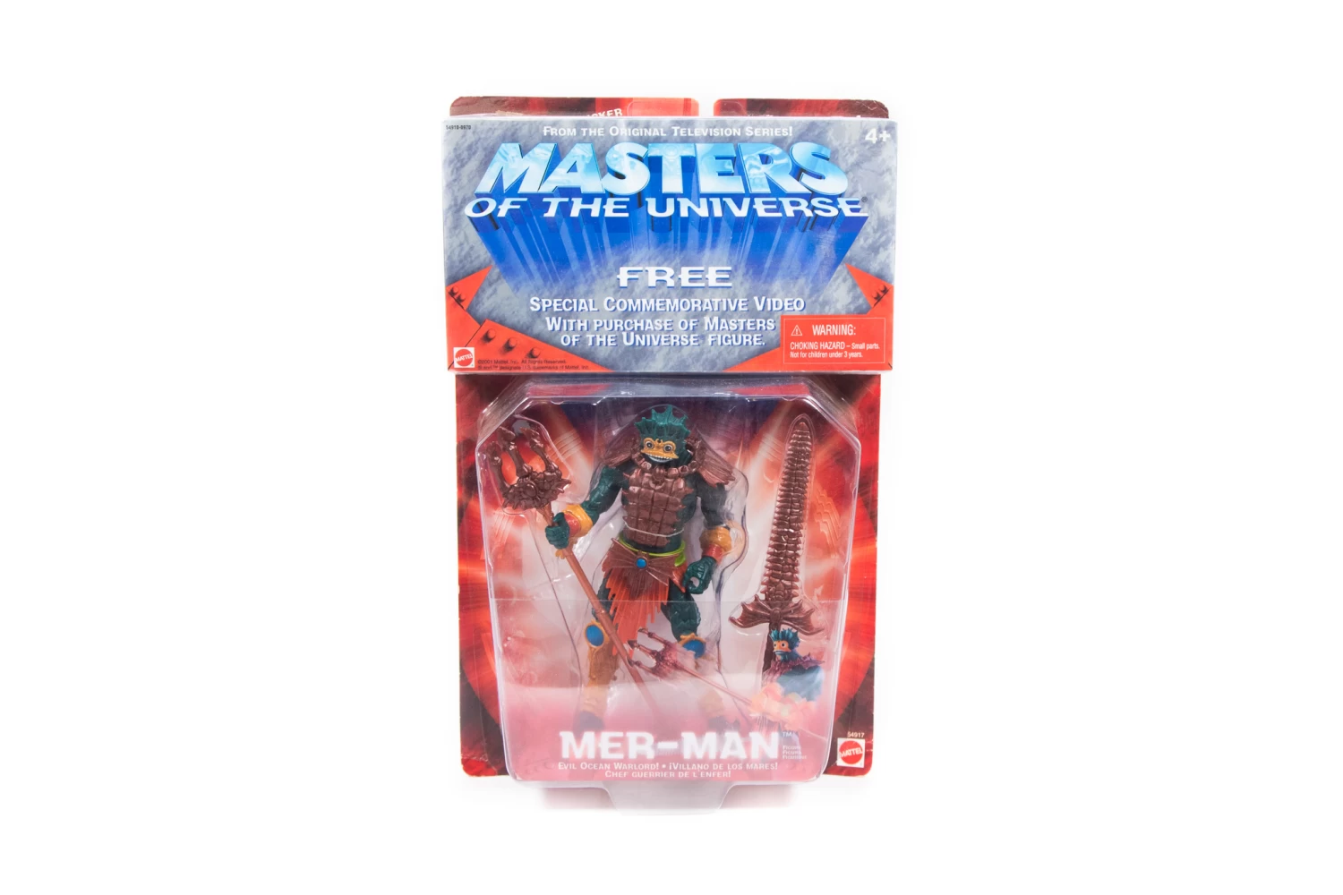 This is Mer-Man figure is from the early 2000 Series Masters of the Universe. This comes complete with Special commemorative VHS video tape.