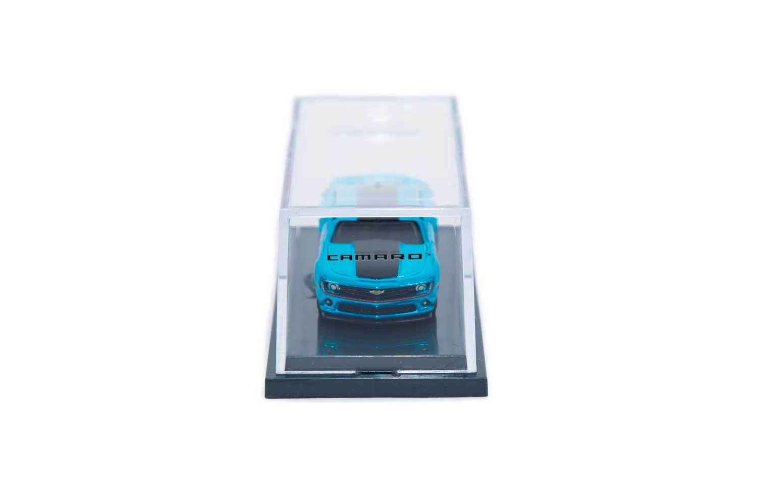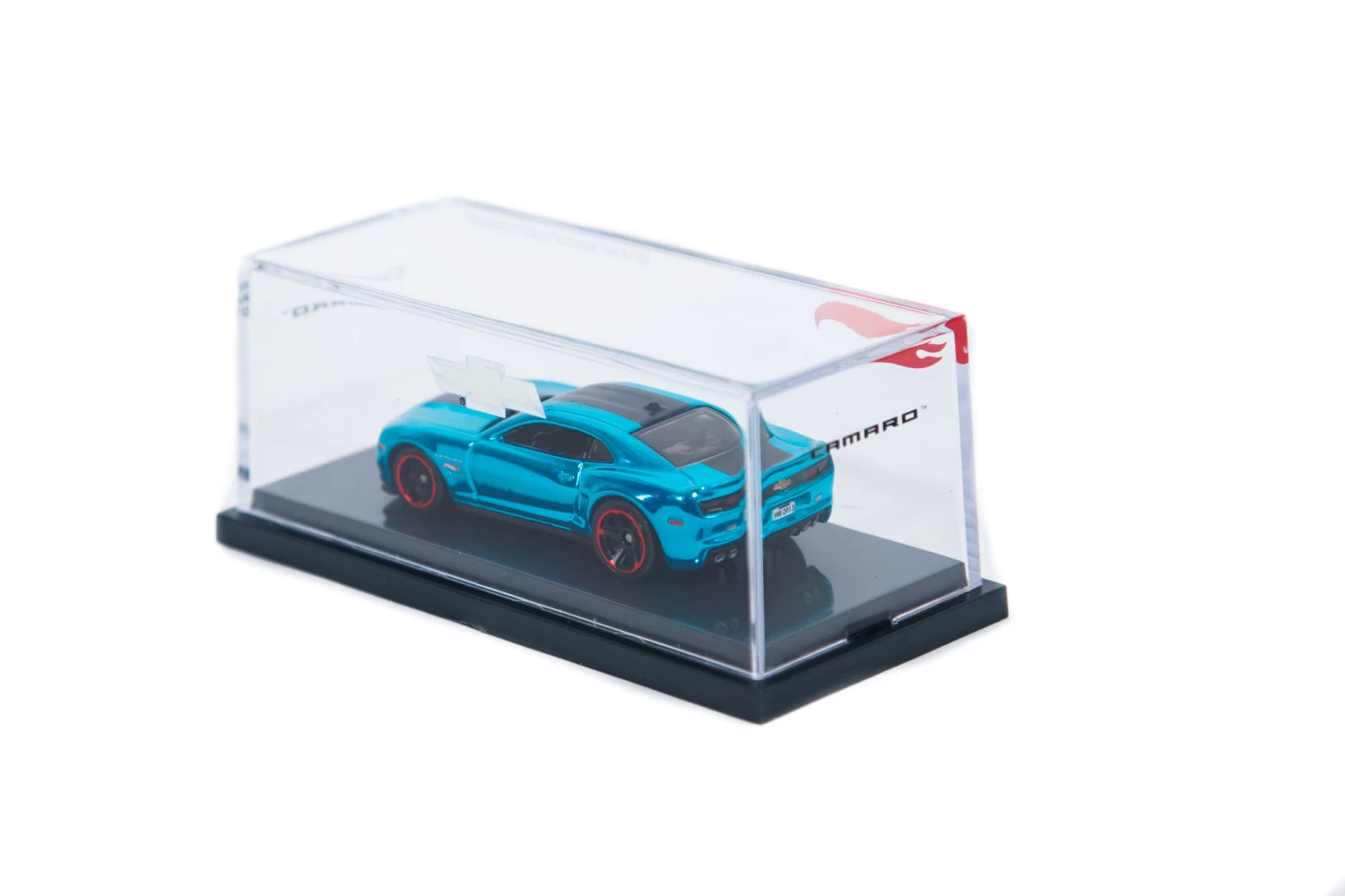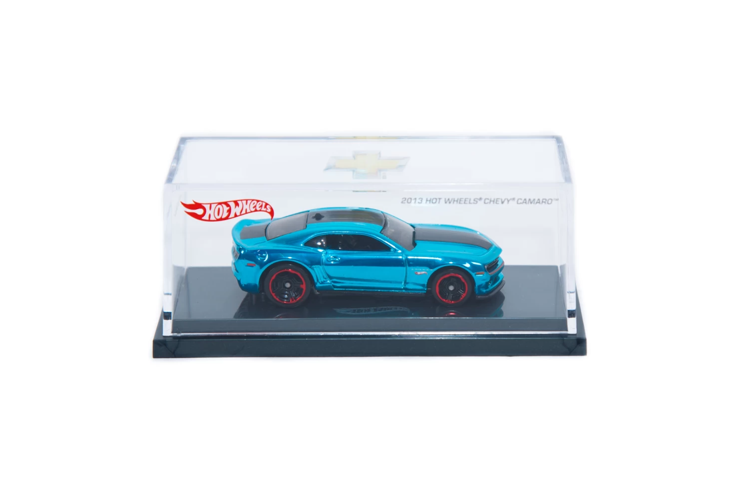 The 1:64 Scale Exclusive Special Edition features authentic logos and a license plate commemorating “Nevada HW 2013”. Spectraflame blue finish with a 2-tone black stripe, sitting on a matte black chassis. It’s features like these that make this cool custom a most-wanted for both Camaro and Hot Wheels collectors alike. Nestled safely inside an acrylic case featuring both the Hot Wheels and Chevrolet logos.