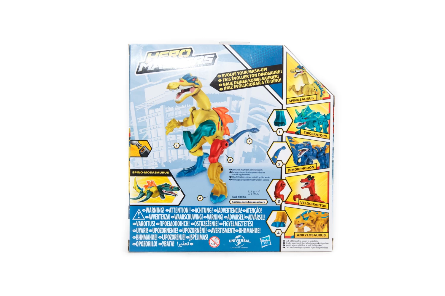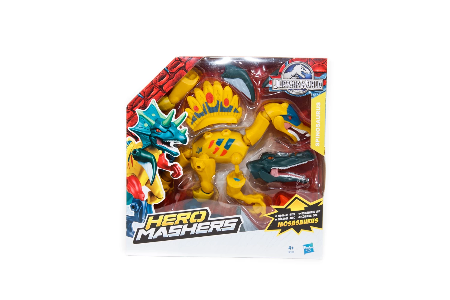 Build your own dino-stomping adventures with this awesome Hero Mashers Carnotaurus figure! This spiny dino is a clawed menace, and he won’t stop until he’s crushed whatever’s in his way. But he can become even more powerful with other Hero Mashers parts! All his parts are removable, so you can swap parts from other Hero Mashers figures for the ultimate hybrid dino. How can other dinos take him on when he’s got a Triceratops leg or a Dilophosaurus tail or a Spinosaurus arm? Evolve your mash-up and your Jurassic World adventures with this Spinosaurus figure
