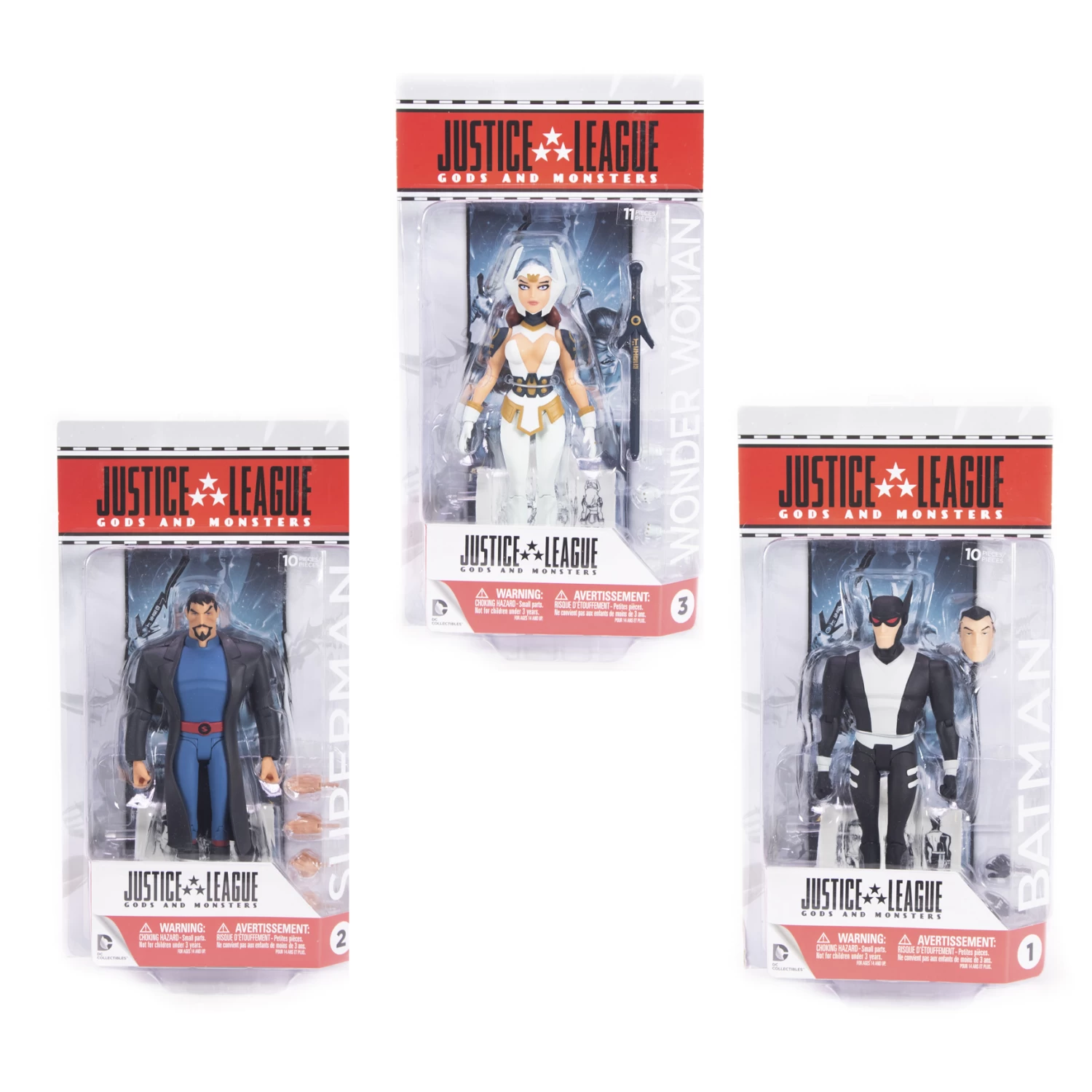 These 6″ figures are from the DC Comics, DC Collectibles Series. It includes a collection of 3 figures from the Justice League Gods and Monsters