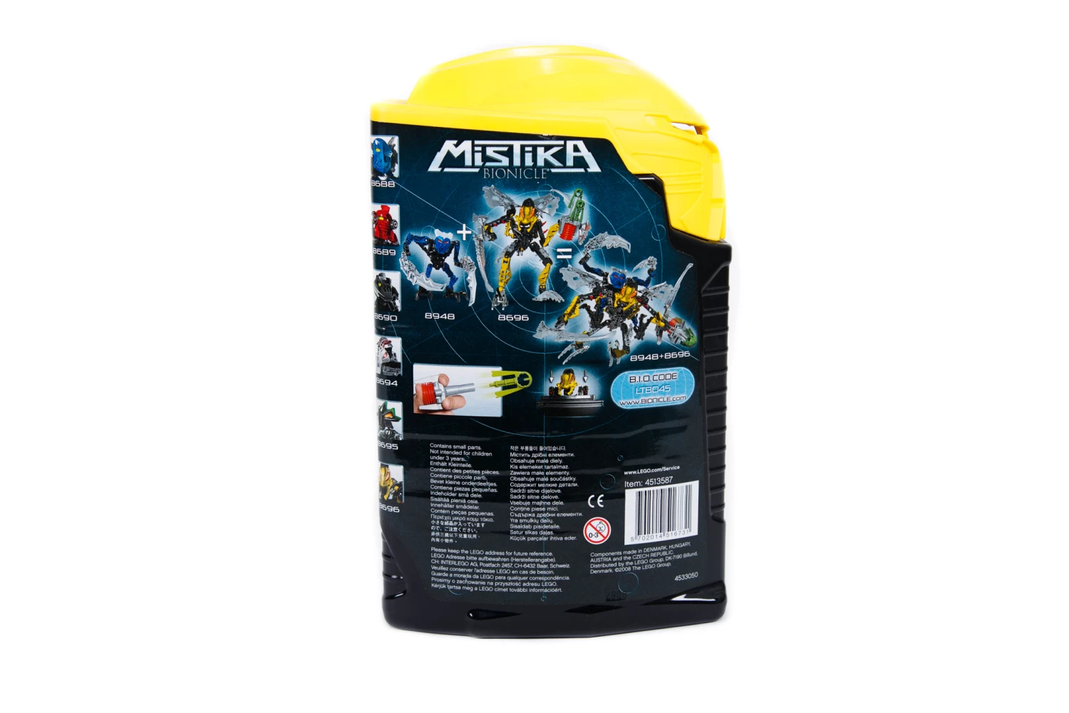 Makuta Bitil uses his Mask of Duplication to draw earlier versions of himself from the past, creating a fierce army of time-traveling warriors! Combined with his spikes, blades and Nynrah ghost blaster, this makes him an unstoppable foe!