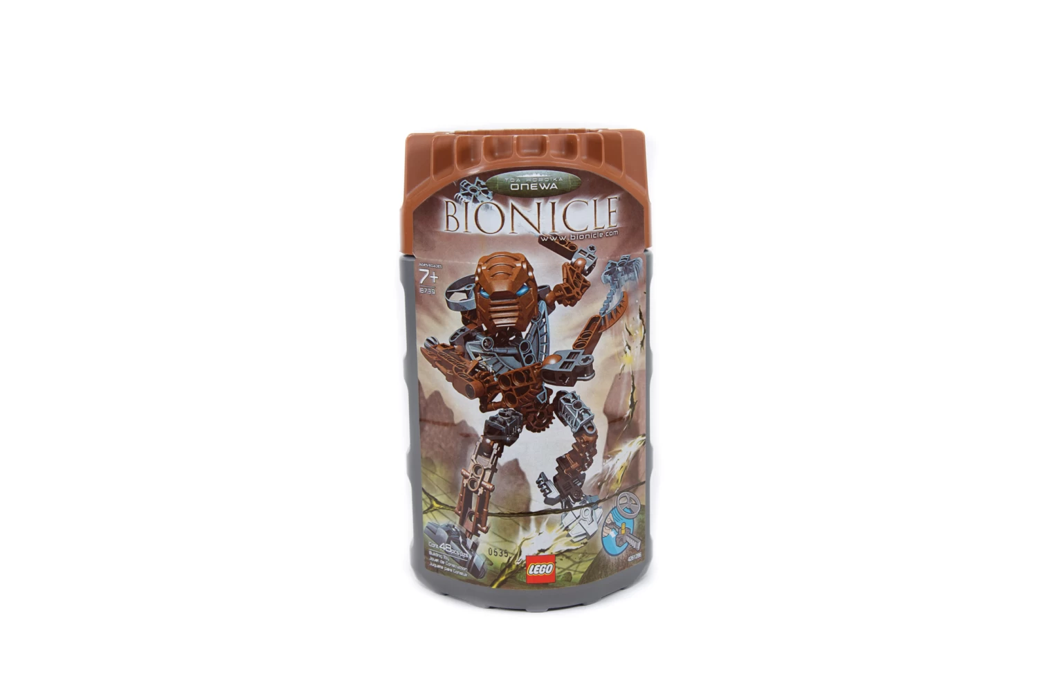It takes all of Toa Hordika Onewa’s willpower to stay a hero, rather than giving in to his unleashed Rahi side. His claw clubs can hurl stones with incredible accuracy, as well as charge up his Rhotuka stone spinner.