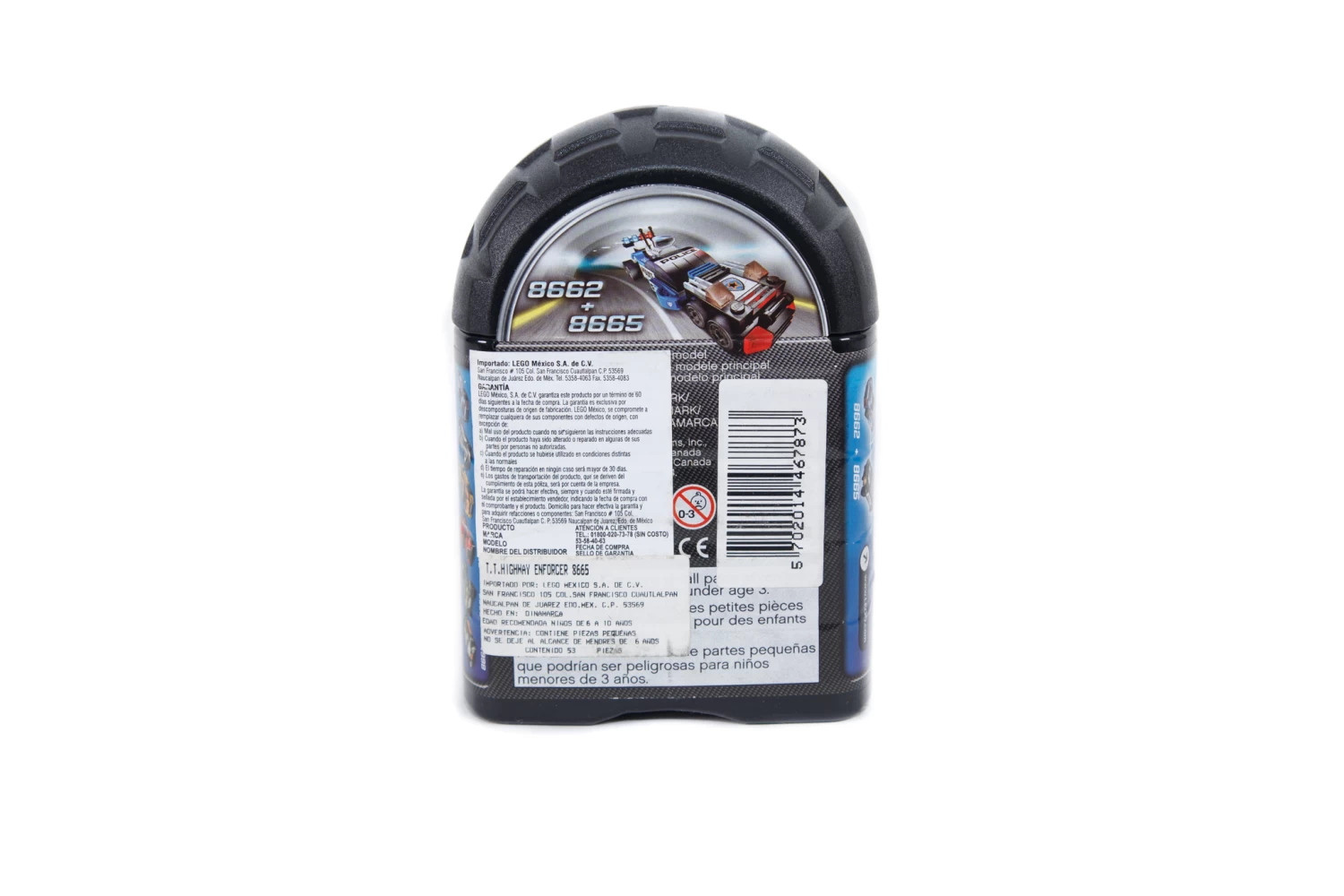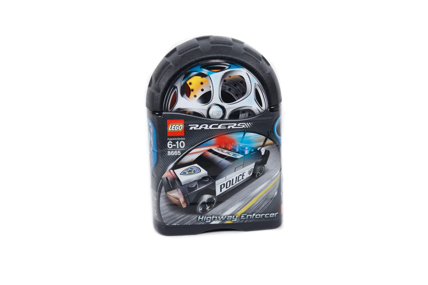 It includes a miniature black police car with trans-orange headlights. It has 52 pieces.