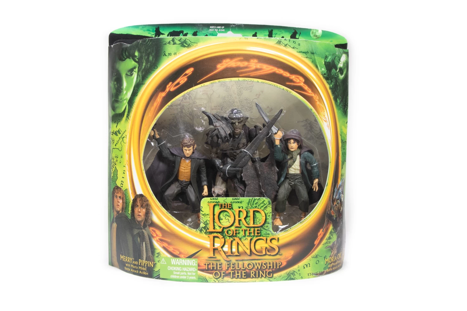 Merry & Pippin with Moria Mines Battle attack Action and Moria Orc with Moria Mines Battle Attack Action.