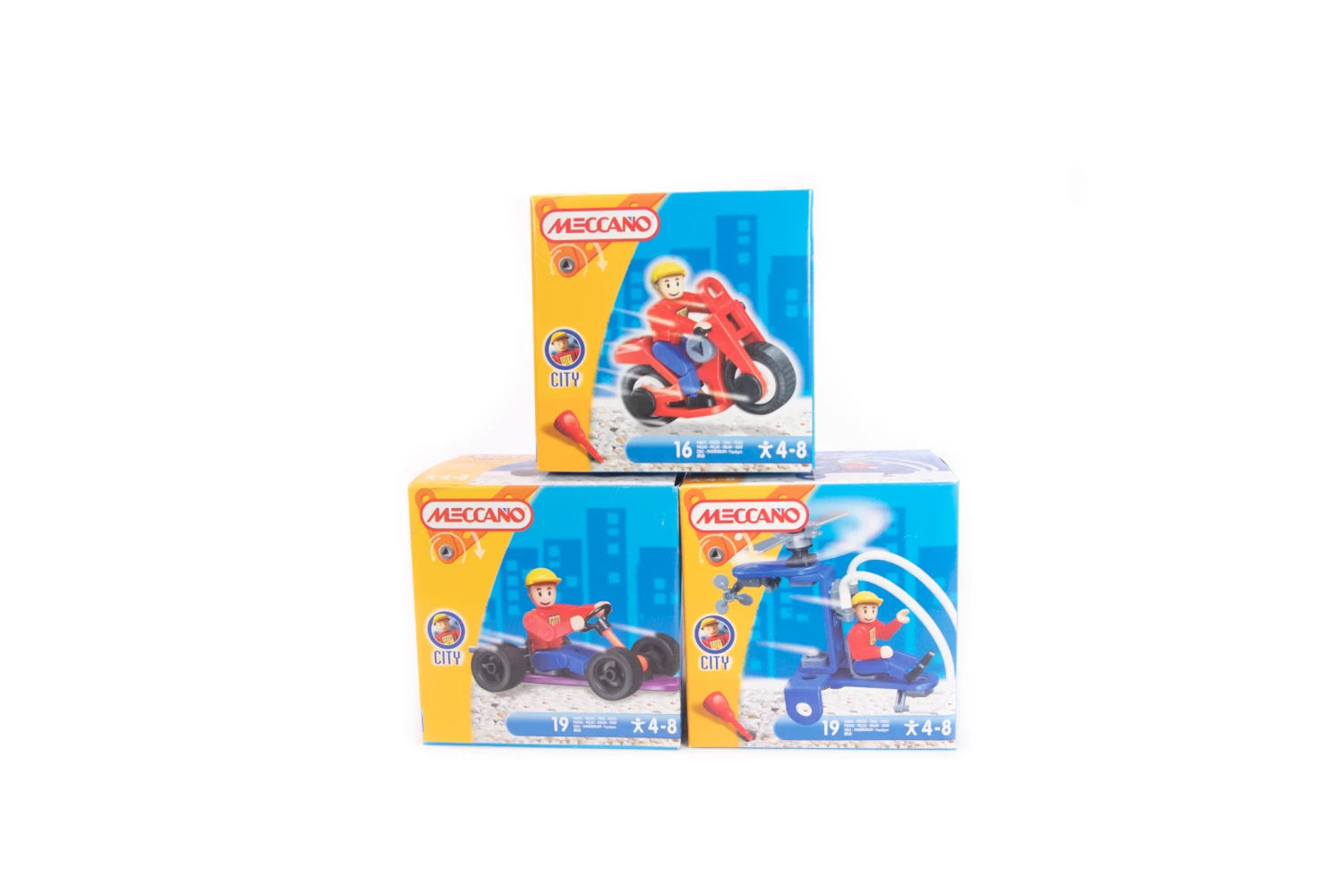 The Meccano City sets are building sets which can be constructed into a range of vehicles. This is a collection of 3 small sets.