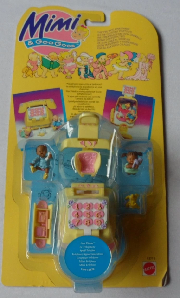 Mimi is an impish little girl who has her own imaginary world full of tiny, secret friends – the Goo Goos! Whenever Mimi’s sad, she just thinks of Goo Goo Land, and she’s off! Grown-ups never go to Goo Goo Land – it’s just for children, like Mimi. When the Goo Goos come out to play, they’re so cheeky – they hide in all kinds of funny places. Mimi and her friends the Goo Goos are having terrific fun in these exciting unique playsets. Each one opens out to reveal a surprise playscene which has a special movement feature operated by a thumbwheel.