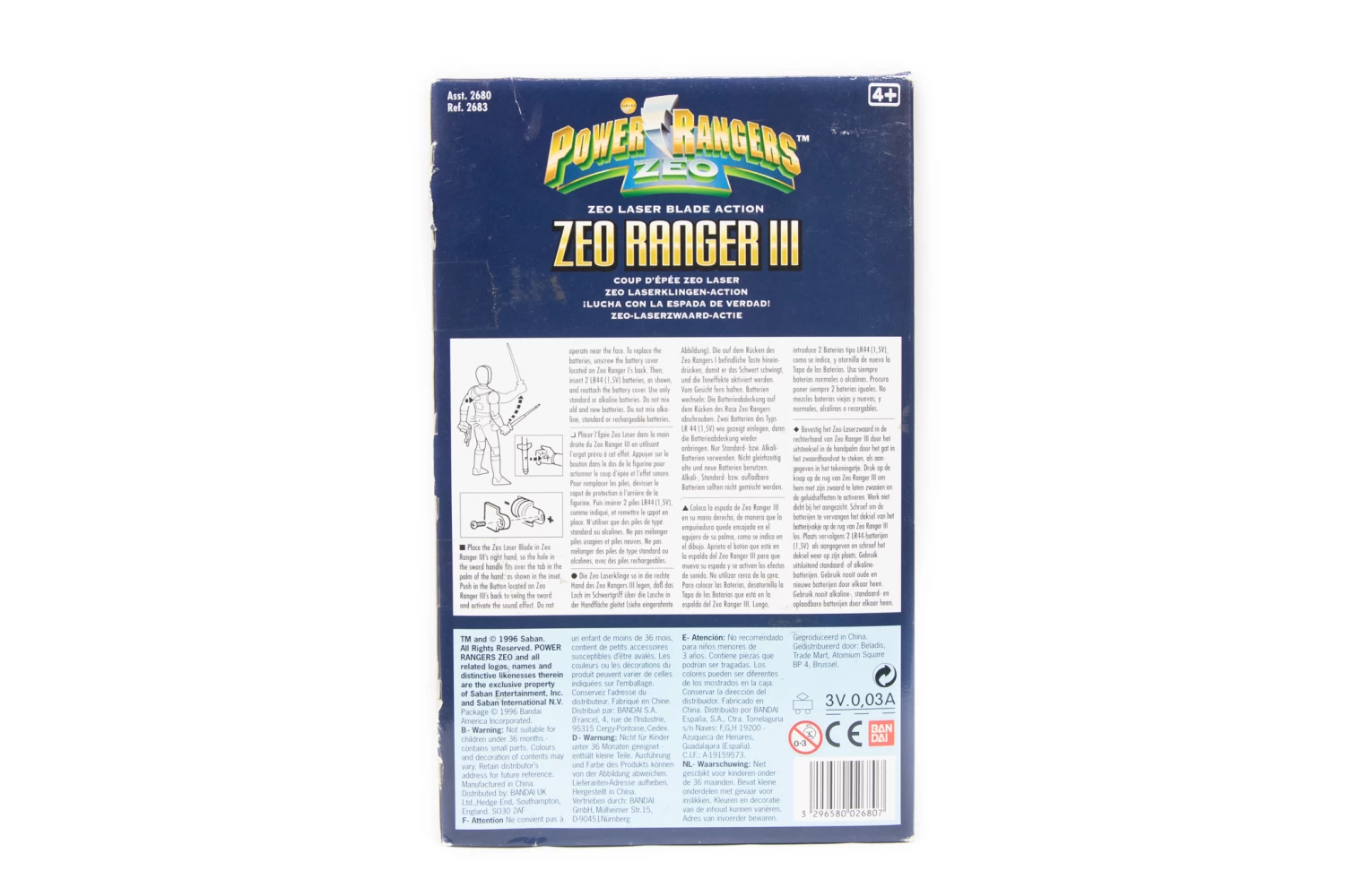 Place the Zeo Laser Blade in Zeo Ranger III’s right hand, so the hole in the sword handle fits of the tab i the palm of the hand.