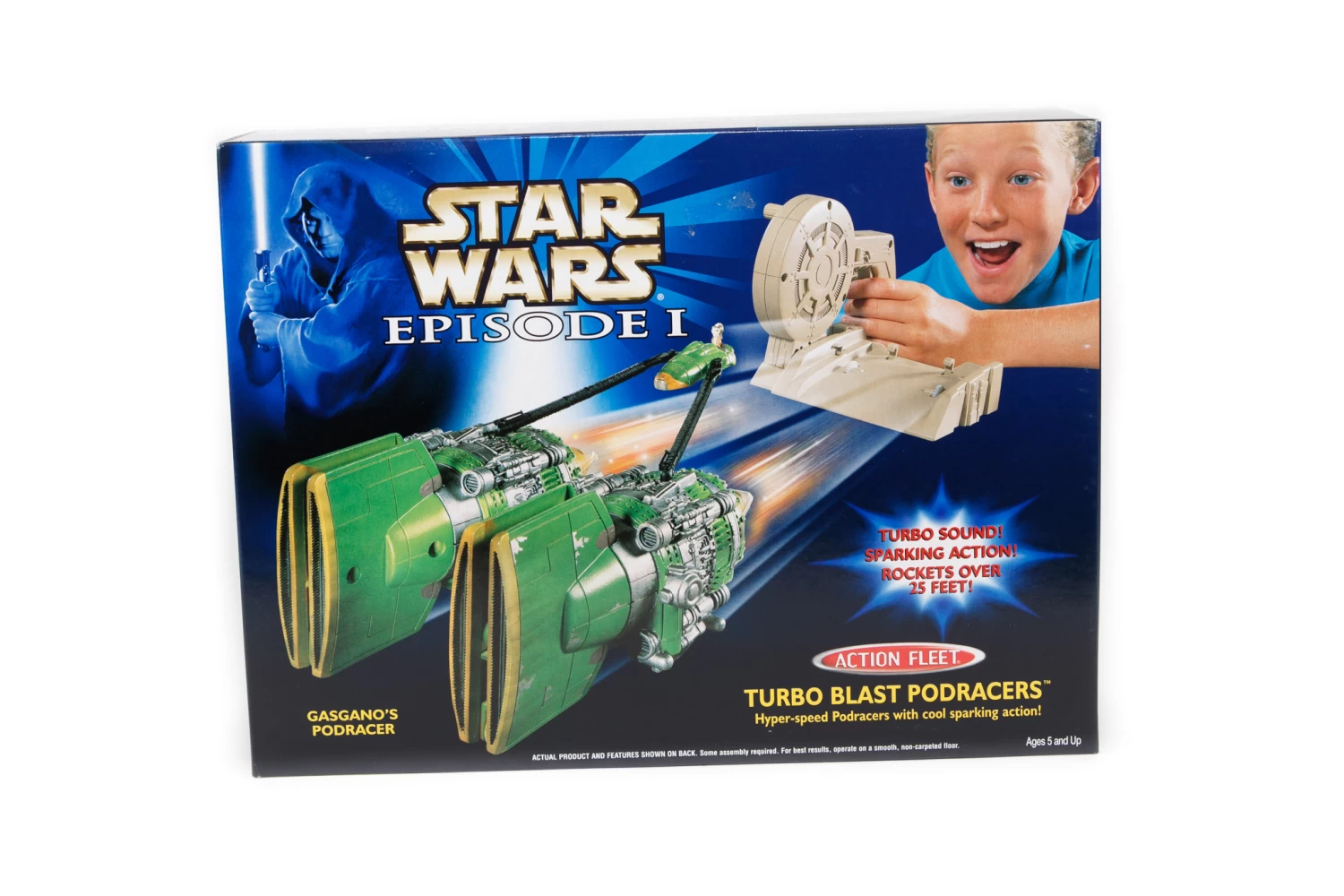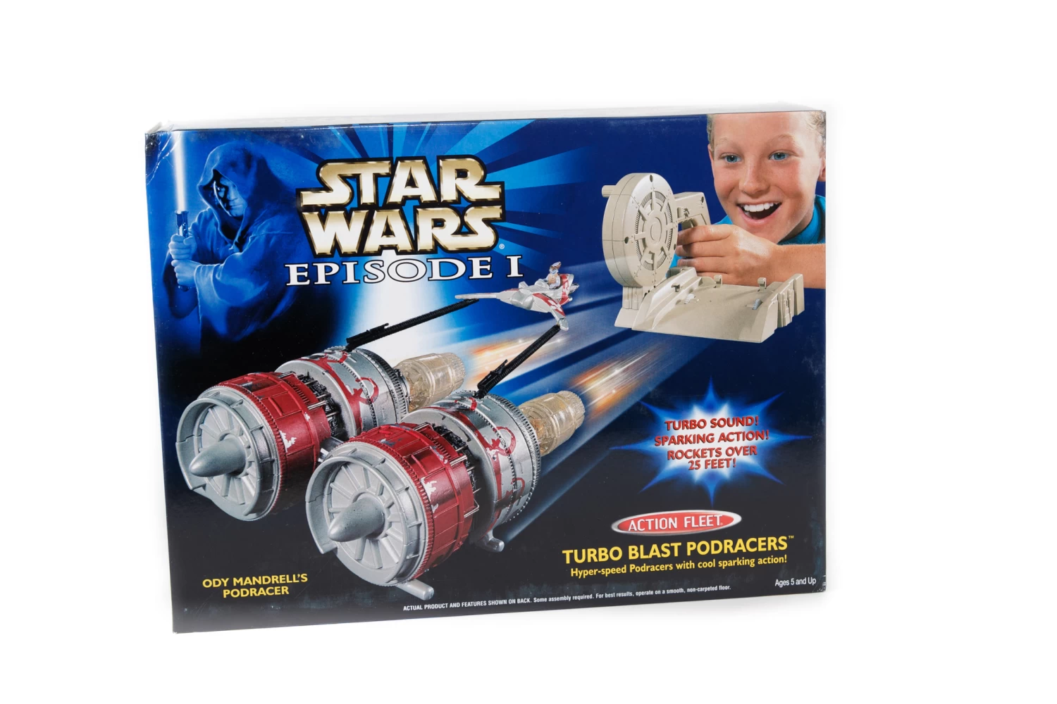 Step up to the starting line and stage your own Podraces with Star Wars Action Fleet Turbo Blast Podracers. Crank up the vehilce, hear the engine rev, then press the trigger.