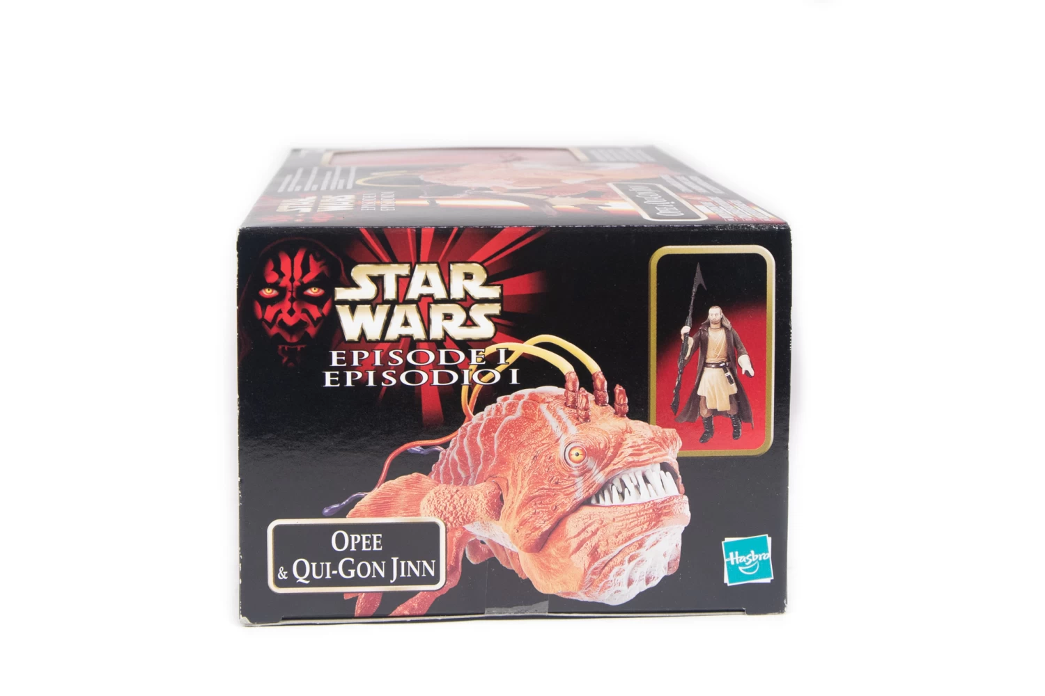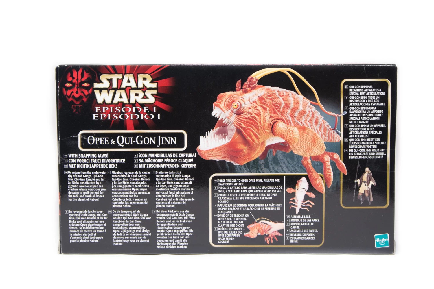 On return from the underwater city of Otoh Gunga, Qui-Gon Junn, Obi-Wan Kenobi and Jar Jar Binks are attacked by a gigantic, ravenous Opee sea creature.