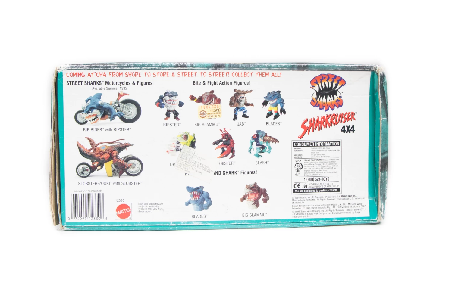 This vehicle is from the 1994 Street Sharks series and comes with NO figures.