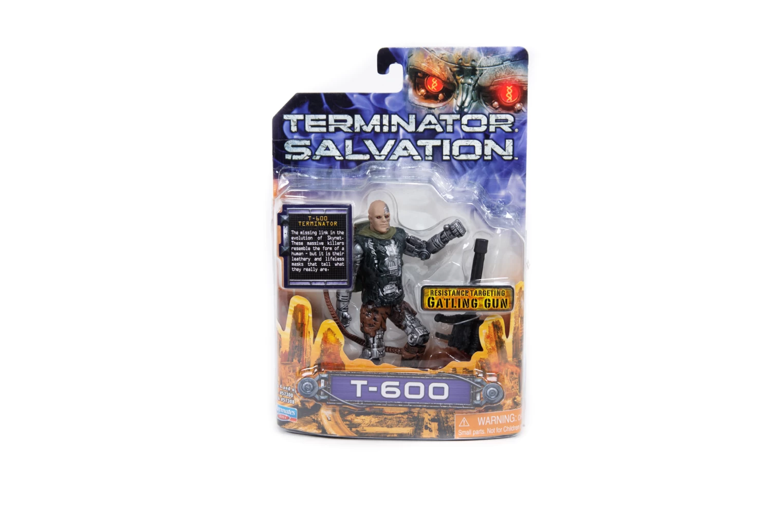 These 6-inch action figures are fully articulated, come with multiple accessories and exact movie styling. Each figure represents one of the main film heroes, this figure is of the T-600 Terminator with resistance targeting gatling gun.
