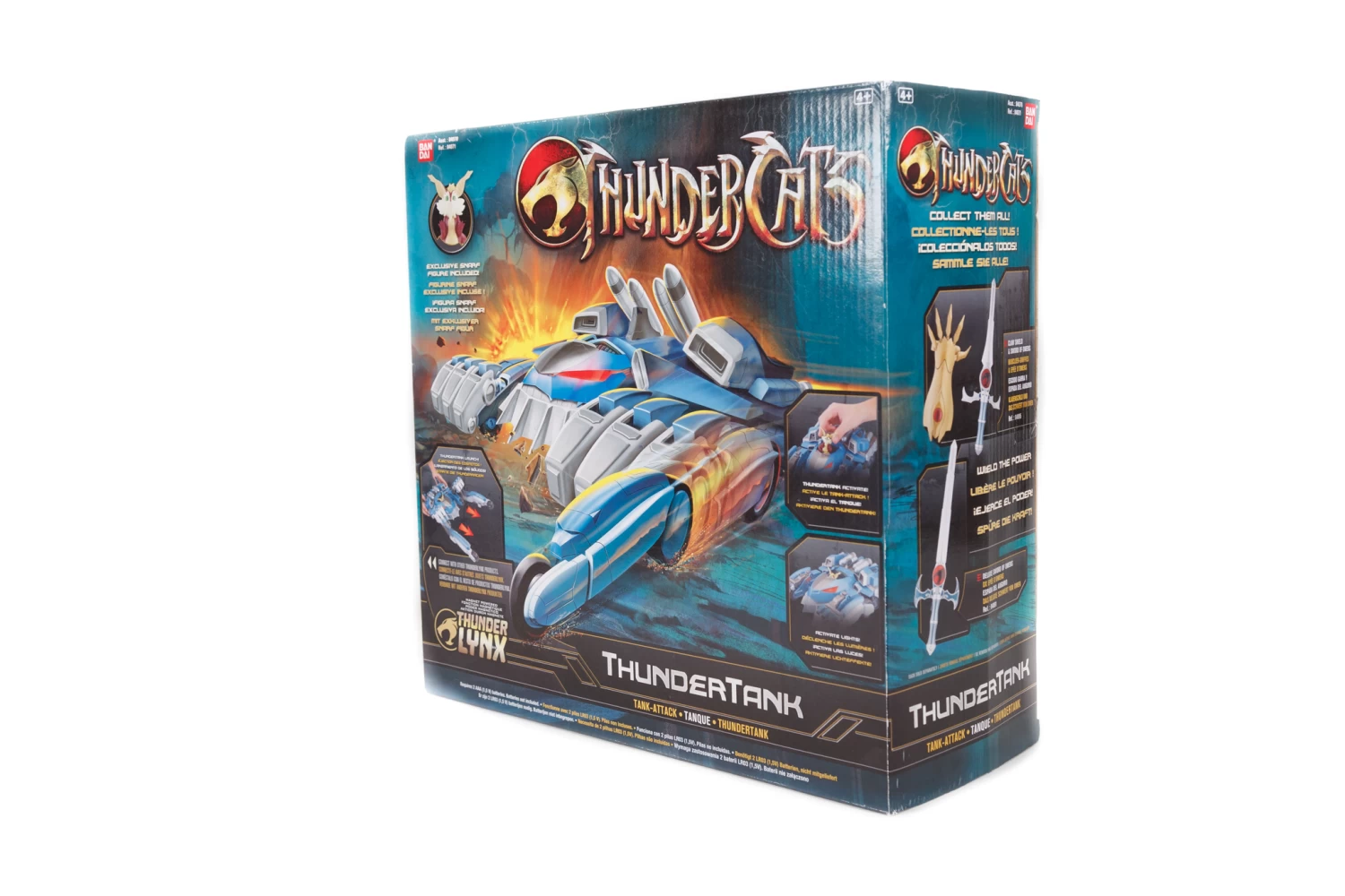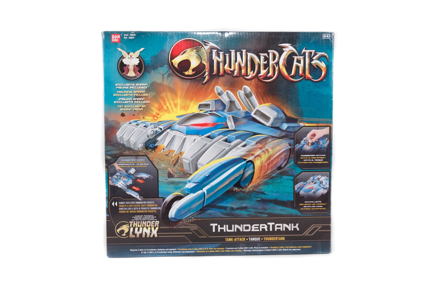 Roll into battle with this vehicle, it interacts with the figures which activates lights and sounds. Combine with ThunderRacers to make it even bigger for battle.