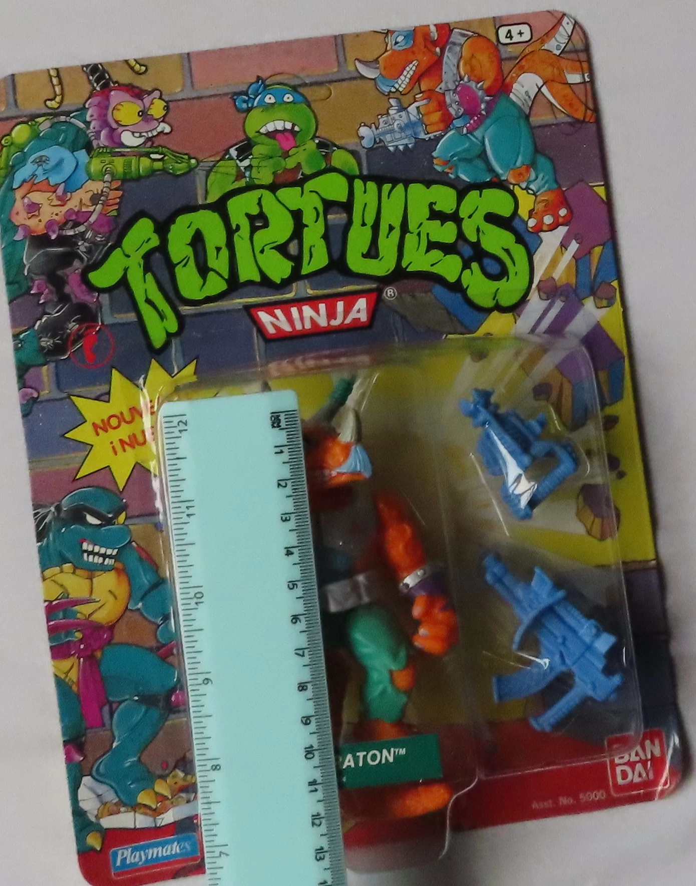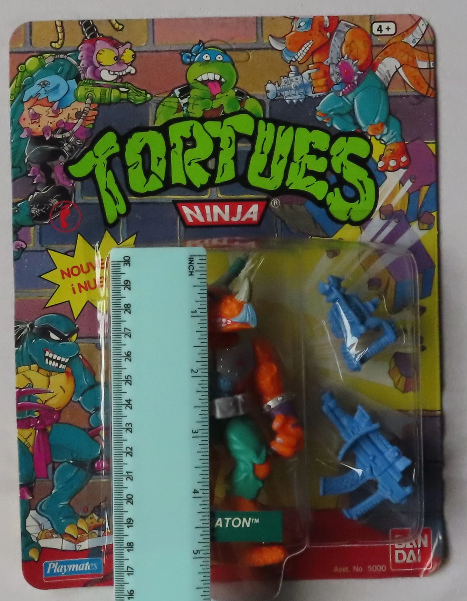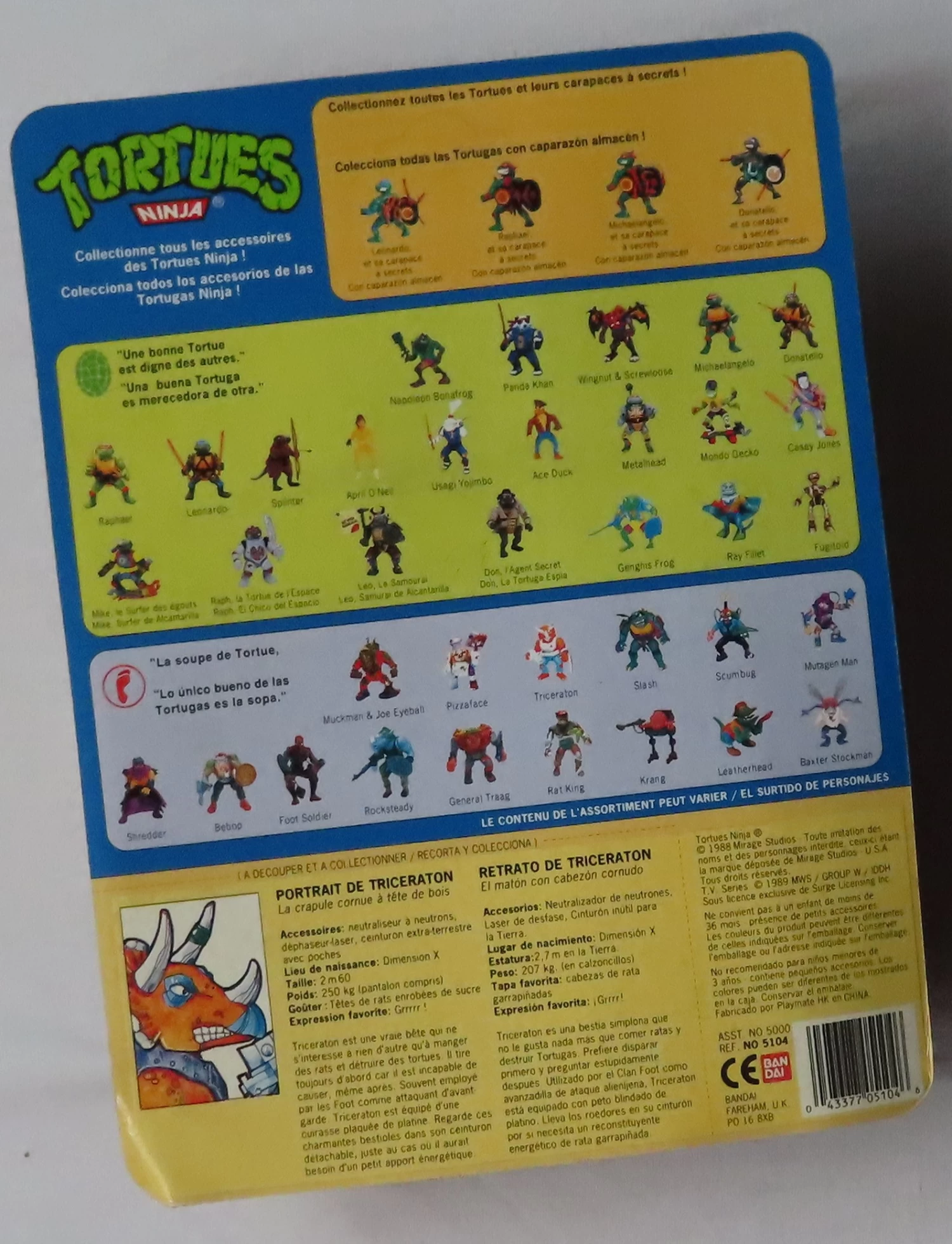 Triceraton is a simple beast, who wants nothing more than to eat rats and destroy Turtles. Ever since our three-fingered green guys visited his homeworld in Dimension X, Triceraton hasn’t gotten his beauty sleep-and boy-oh-boy does it show. This ugly cold-blooded creature uses the full capacity of his walnut-sized brain to seek out and destroy all Turtles!