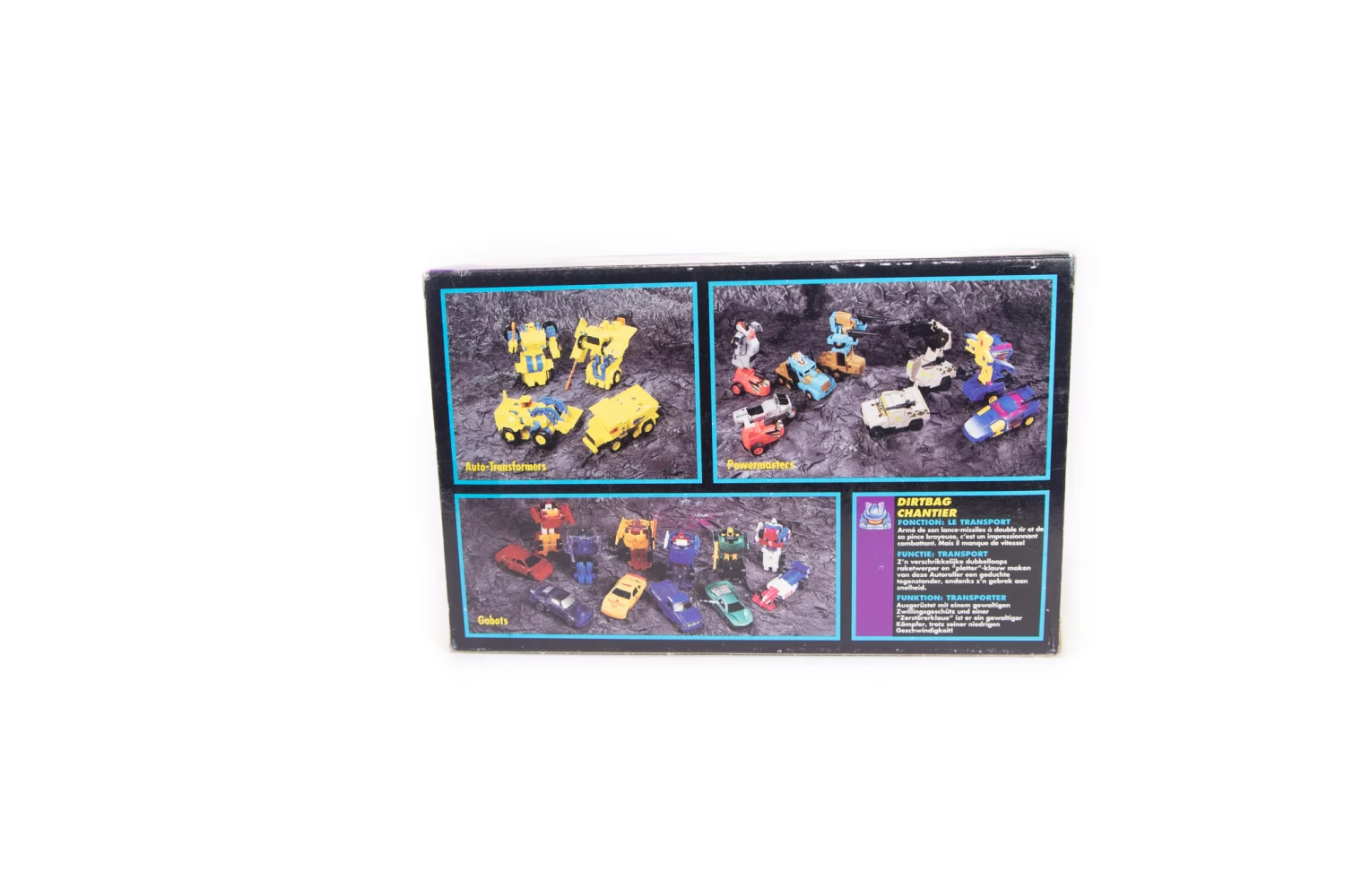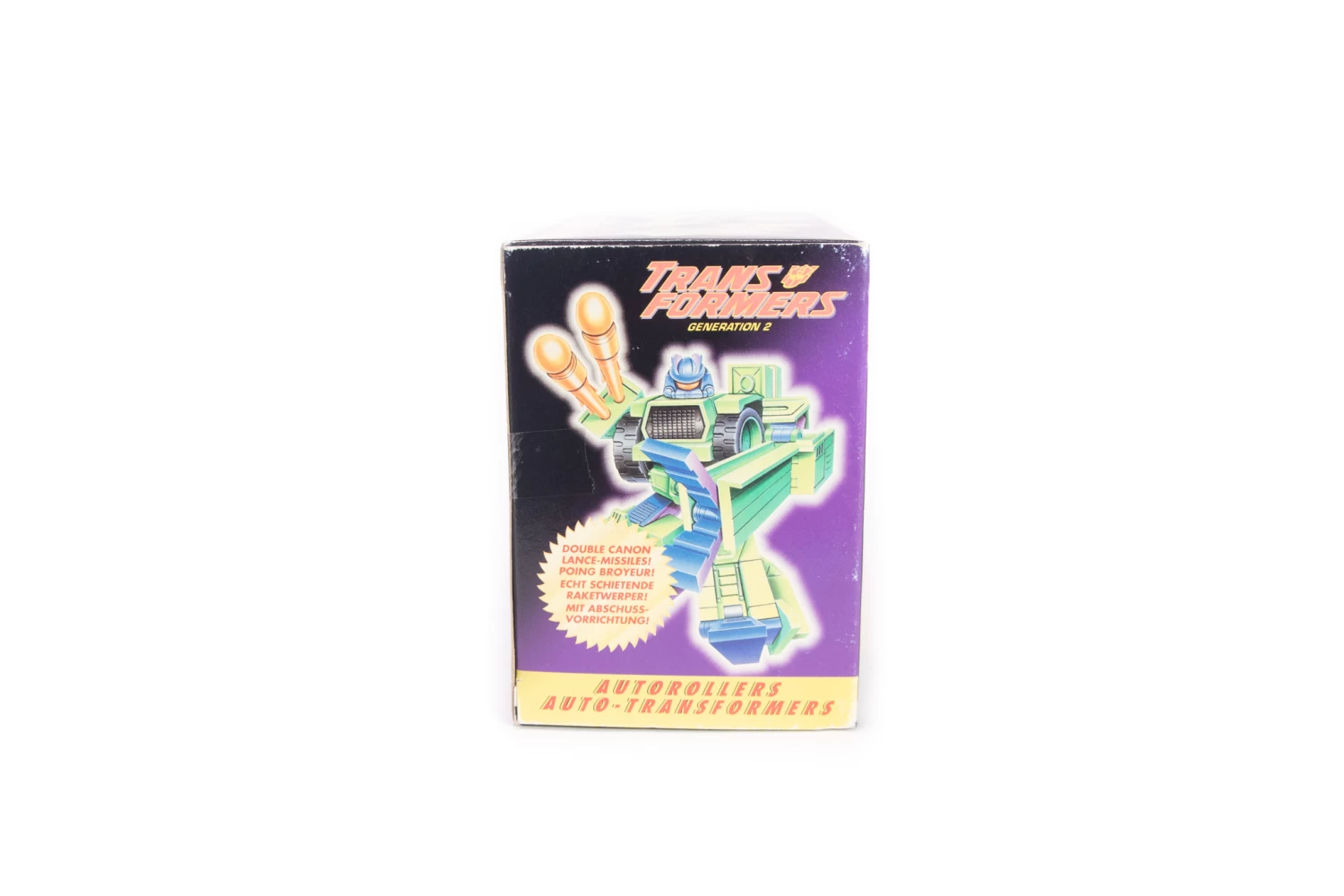 The Auto Rollers are a pair of big, nasty Decepticon thugs. When the Decepticons are entrenched in battle against the Autobots, Dirtbag is the one tasked with carrying loads of munitions to his fellow troops. This job is what requires the titanium/steel composite armor that both protects him and, should he have to engage the enemy himself, hinders him.