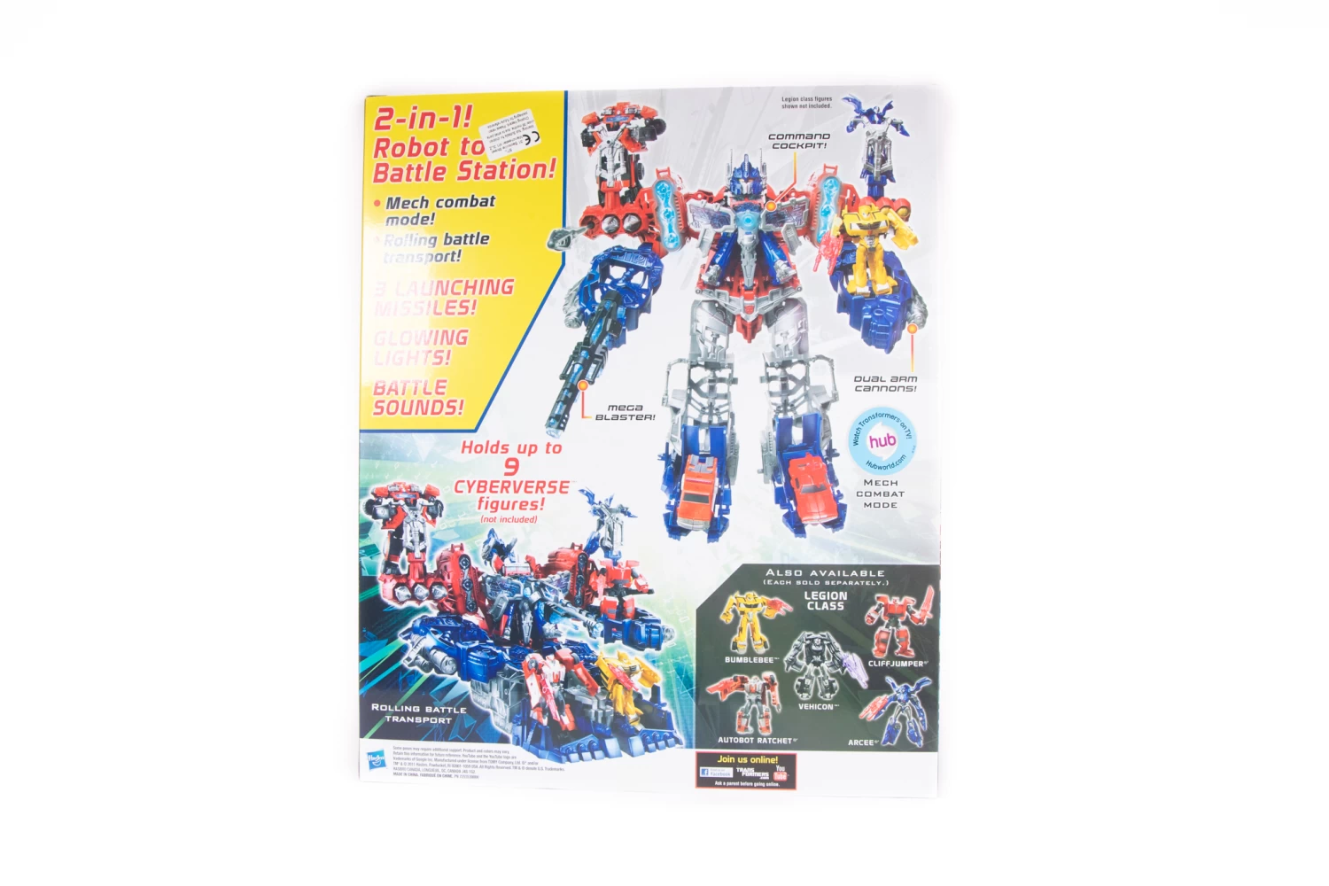 This incredible Optimus Maximus figure is more than an Autobot hero he’s the ultimate weapon in the Autobot arsenal! In robot mode, this 2-in-1 mega-hero has a command cockpit and is armed with dual arm cannons and a mega blaster that attaches to his hand or chest. But when you convert him to vehicle mode, he’s a rolling battle station capable of holding up to 9 Cyberverse figures!
